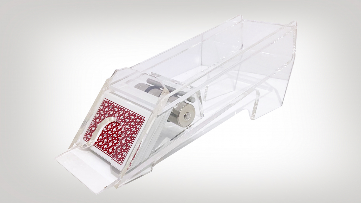 Um distribuidor de cartas profissional de 8 decks para o jogo de Blackjack é um dispositivo projetado para fornecer cartas de forma rápida, eficiente e imparcial durante uma partida de Blackjack. É usado em jogos profissionais para garantir um jogo justo. Eles são importantes para garantir a integridade do jogo, minimizar erros humanos e proporcionar uma experiência de jogo suave e profissional para os jogadores de Blackjack. Modelo profissional com Rolo deslisante com ação suave. *Não acompanha baralho.