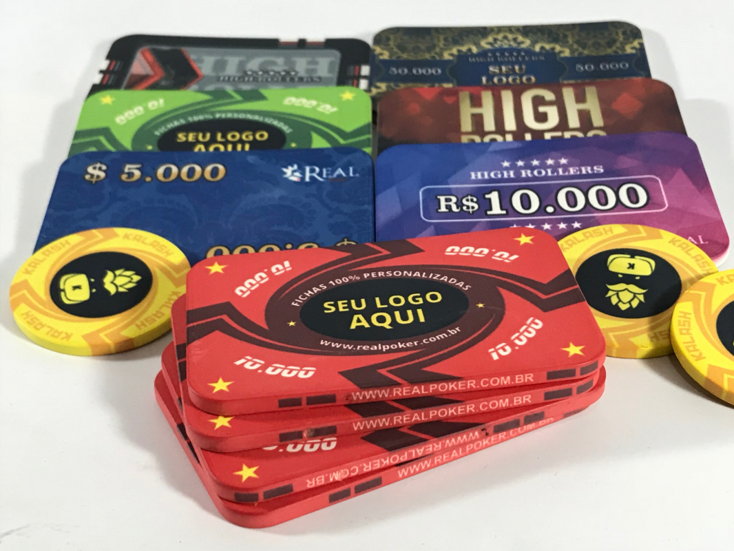 A Real Poker, como fabricante oficial do WSOP Brazil e BSOP, traz a você as fichas de poker personalizadas. Estas não são apenas fichas de poker comuns; elas são projetadas para serem únicas. Com a opção de personalizar o tipo de borda, o tamanho da ficha, recursos de anti-falsificação e o botão de dealer, cada detalhe é pensado para entregar o melhor para os aficionados do poker. As fichas de poker adicionam o quociente glamour no jogo e uma das razões mais importantes de jogar poker com fichas em clubes, torneios e cassinos é evitar qualquer falsificação.
