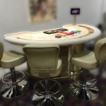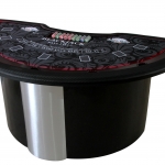 A quantidade de porta copos é de acordo com os lugares e com entrada do dealer, terá uma unidade a menos. Para porta copos na pista é necessário escolher uma cor no item PISTA PARA FICHAS.