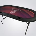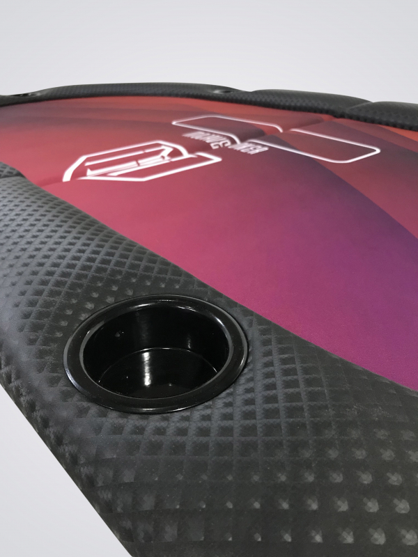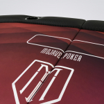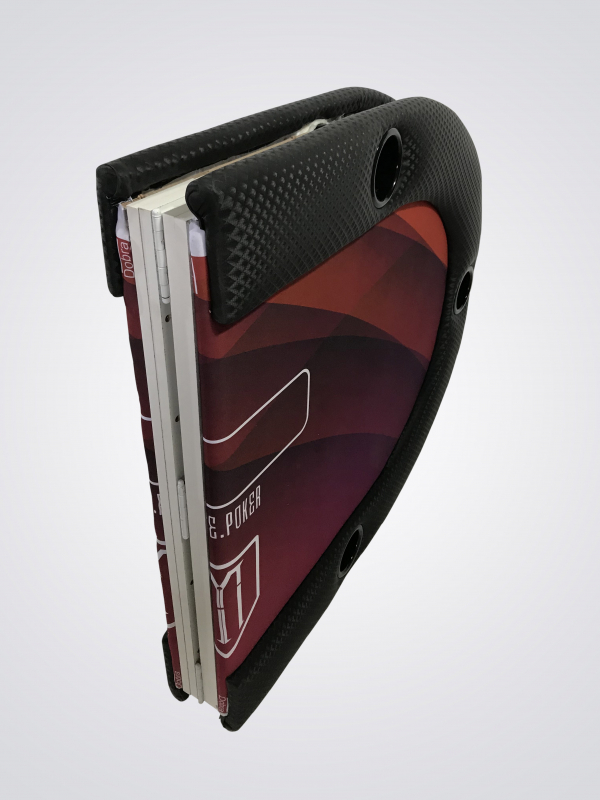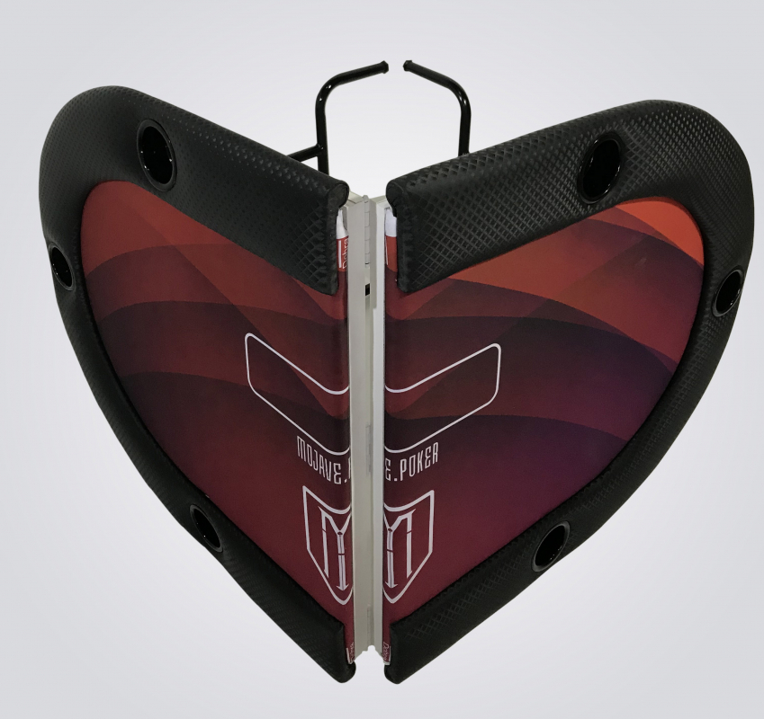 Ideal para ter em sua casa e também em torneios itinerantes, não ocupa espaço e é muito prática para ser transportada. Mesa 100% personalizada com excelente material e perfeito acabamento. Fabricada em MDF de 15mm, espuma de alta densidade no centro e na borda, couríssimo sem emendas, fórmica e tecido especial de carteado anti-líquido.