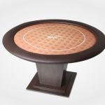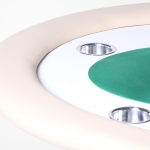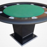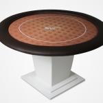 Apresentamos a mesa de jogos ideal para entusiastas do poker, profissionais e anfitriões de torneios. Esta mesa de poker redonda é a escolha perfeita para casas de poker, torneios e até para o conforto da sua casa. Totalmente personalizável, é fabricada com MDF de 15mm, espuma de alta densidade no centro e na borda, couríssimo sem emendas, fórmica e um tecido especial para carteado, garantindo durabilidade e um acabamento impecável.
