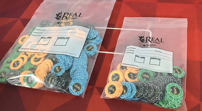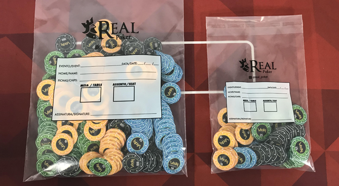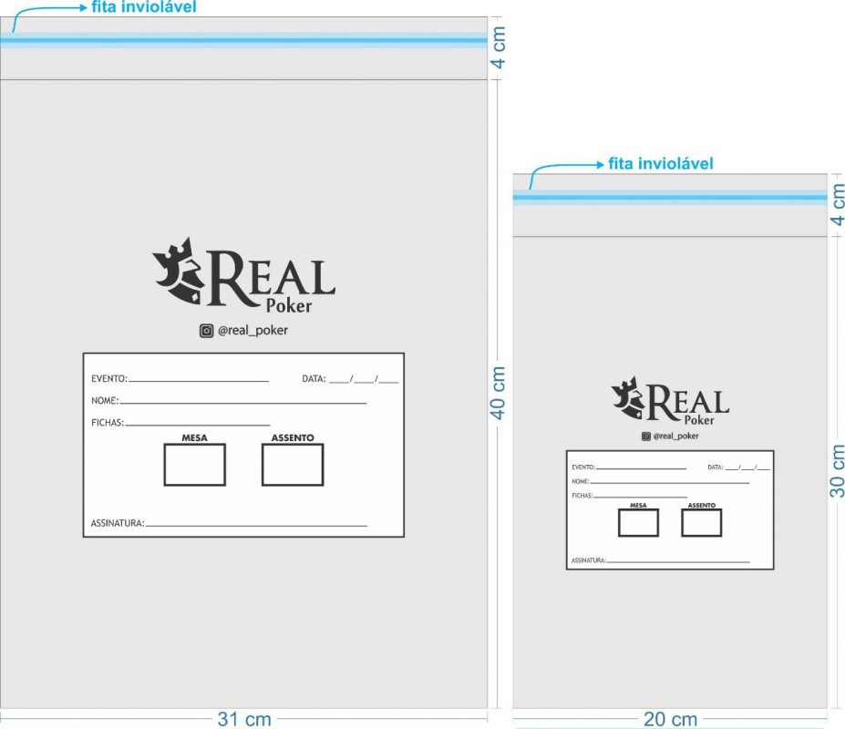 Saco plástico ensacar fichas de torneio de poker, com plástico de alta resistência, lacre com fita inviolável e local para escrever informações do torneio.